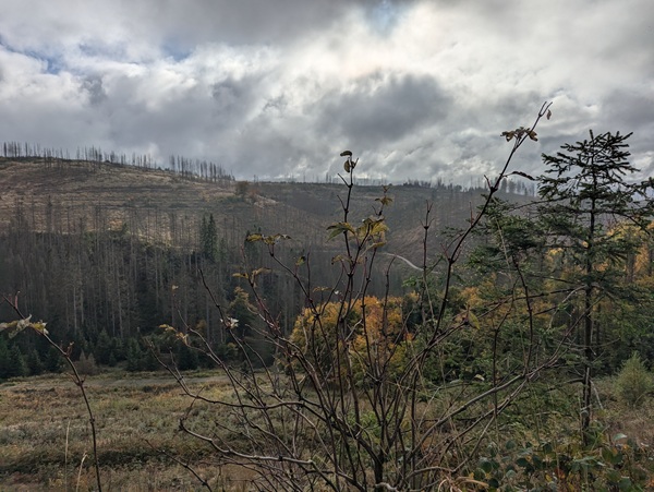 Heute ging es also von Buntenbock aus los am Ziegenberger Teich vorbei. Ich hatte aus dem Hotelfenster schon gesehen, dass es geregnet hat. Aber gerade war es trocken. Bis ich rauskam ☹