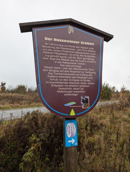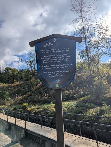 Was früher war des Bergwerks Nutz, steht heute unter Denkmalschutz. So dieser alte Wassergraben, den Bergleut ausgeschachtet haben, damit in Gruben, ferngelegen, die Wasserräder sich bewegen. Reiß nichts heraus, wirf nichts hinein, laß beieinander was aus Stein. Gemeinsam wollen wir erhalten, was, lang ists her, gebaut die Alten.