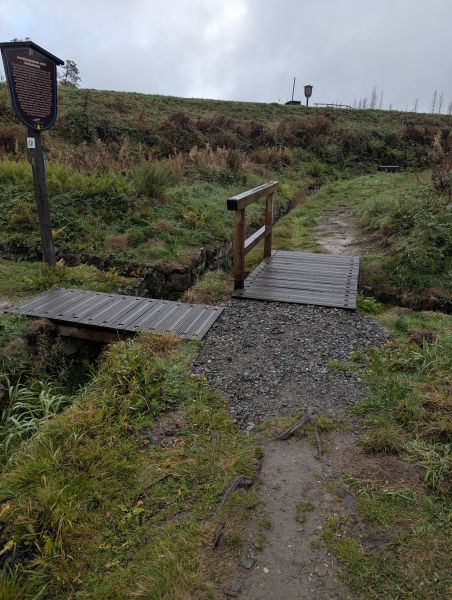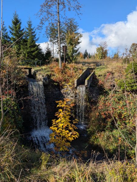 Aber der Rucksack hat genervt. Irgendwie saß heute auch nix so, wie es sollte. Dabei hatte ich gestern die Rückenlänge nochmal um zwei Einheiten reduziert, so dass der Abstand zwischen Hüftgurt und Schultern geringer war. Gestern rutschte mir der Rucksack nämlich immer auf den Hintern und das ganze Gewicht lastete auf meinen Schultern. Nicht toll. Und heute morgen war es auch so. Aber ich hab nicht gejammert. Vielleicht nur ein klein wenig, als ich mit meiner Arbeitskollegin telefoniert habe 😊. Da kam aber auch schon die Sonne raus und der Regen hat sich komplett verabschiedet. Zu dem Zeitpunkt war ich eine Stunde unterwegs und die ersten Einrichtungen des Oberharzer Wasserregals konnte ich bestaunen.