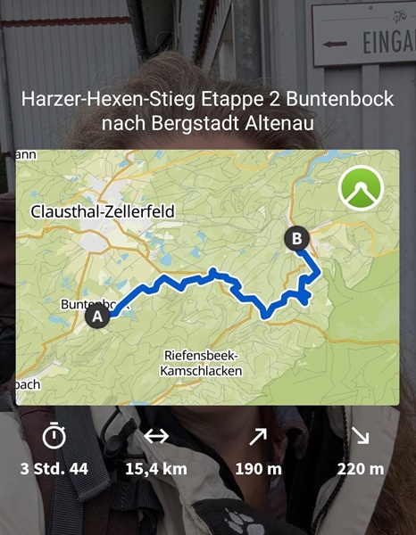Bei einer kleinen Rast kommt tatsächlich das Paar von gestern mittag auch wieder. Und kurz vorher überholte uns eine Oma mit Enkel, die haben wir gestern auch bereits getroffen. Der Hexen-Stieg ist offenbar klein 🙂