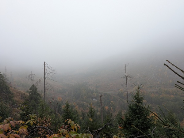 Luftfeuchtigkeit 100%, man könnte es auch Nieselregen nennen. Oder Dauerregen? Jedenfalls hatte ich mich entschieden, den eigentlich für heute geplanten Ruhetag doch zu nutzen und meine für übermorgen geplante lange Tour auf zwei kleine aufzuteilen und den Bus zu nutzen. Hier im Harz zahlt man Kurtaxe und dafür kann man mit der Gästekarte kostenlos den ÖPNV nutzen. Super!