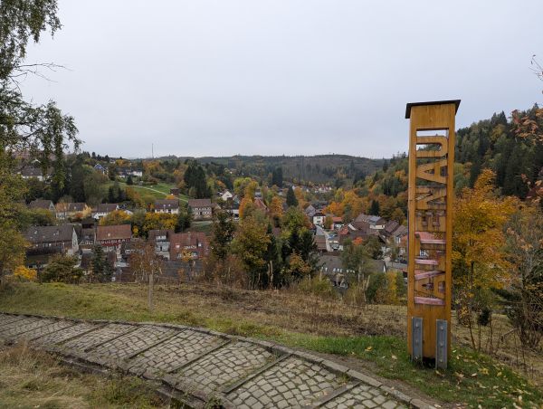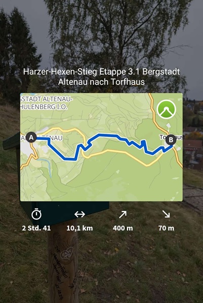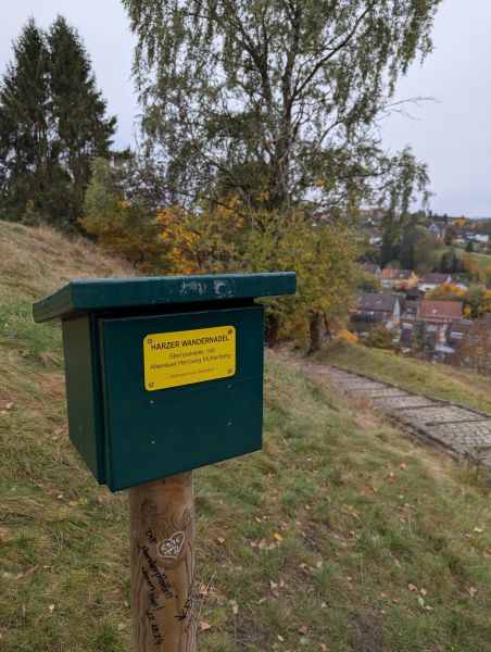 Es geht also los in Altenau und zunächst gehe ich hier auf dem Herzweg. Der gehört nicht zum Harzer-Hexen-Stieg, aber von meiner Unterkunft muss ich erstmal wieder dorthin. Herzweg vermutlich deswegen, weil das Herz-Kreislauf-System so richtig in Wallung gerät bei dem Anstieg! Aber ich entdecke eine wunderschöne Aussicht und eine Stempelstelle.