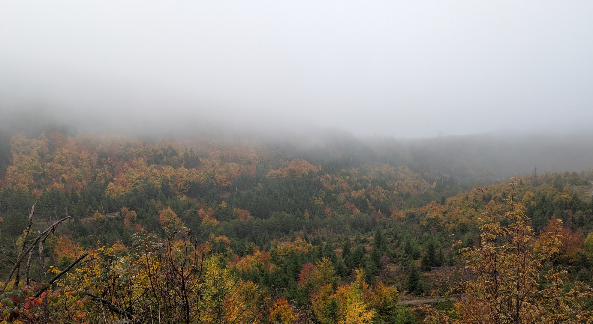 Luftfeuchtigkeit 100%, man könnte es auch Nieselregen nennen. Oder Dauerregen? Jedenfalls hatte ich mich entschieden, den eigentlich für heute geplanten Ruhetag doch zu nutzen und meine für übermorgen geplante lange Tour auf zwei kleine aufzuteilen und den Bus zu nutzen. Hier im Harz zahlt man Kurtaxe und dafür kann man mit der Gästekarte kostenlos den ÖPNV nutzen. Super!
